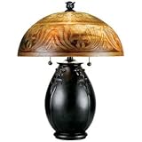From the Quoizel lighting collection, this quietly ornate table lamp features lush Art Nouveau styling. Base is in a burnished Rossa finish. Shade is in amber etched glass. When illuminated the lamp emits an invitingly soft light. Rosa finish. Etched glass shade. 18" high. 14" diameter shade. Uses two 60 watt medium base bulbs (not included)..../ Quoizel Glenhaven Table Lamp / tiffany lamps